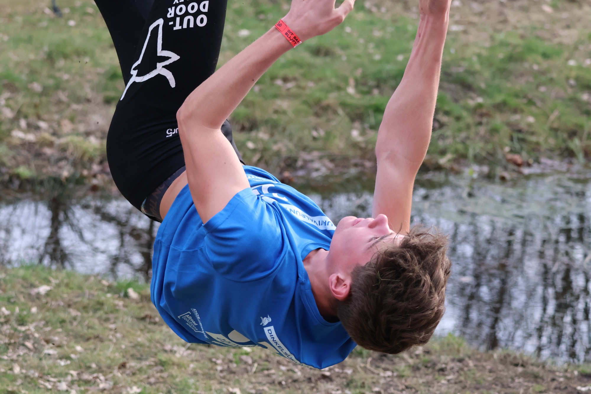 Deelnemers mogen niet rusten boven in het net!