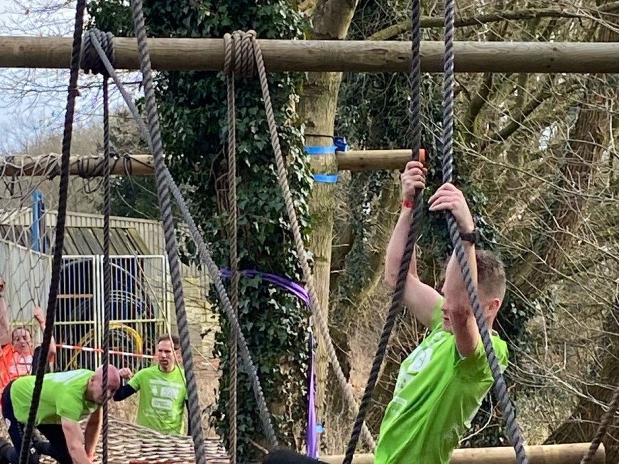Deelnemers klimmen vanaf de onderkant van het schuine net naar de bovenkant van het net en klimmen boven op het net. Deelnemers klimmen middels het inspring touw in het slappelus touw. Middels het hangende touw en balk klimmen de deelnemers een laatste keer over de balk.