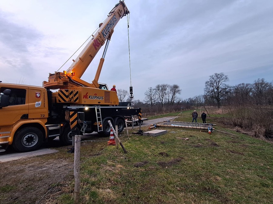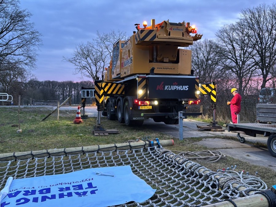 Touwen/balken losknopen en naar de Strootsweg brengen. Hiervoor is een ladder nodig, overleg met je rayonhoofd hoe je deze kan krijgen.