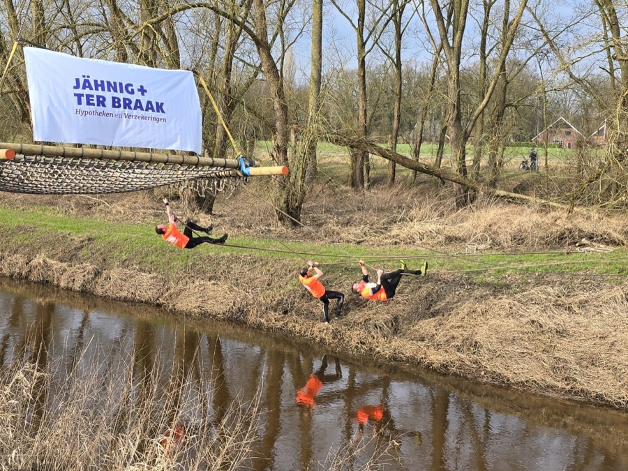 Deelnemers moeten de Dinkel over steken middels de kraan hindernis van rechts naar links. Ze beginnen met een apenhang en klimmen vervolgens via de lianen naar het net toe, hier gaan ze onder het net door en klimmen ze via het net naar de apenhang die naar beneden gaat.