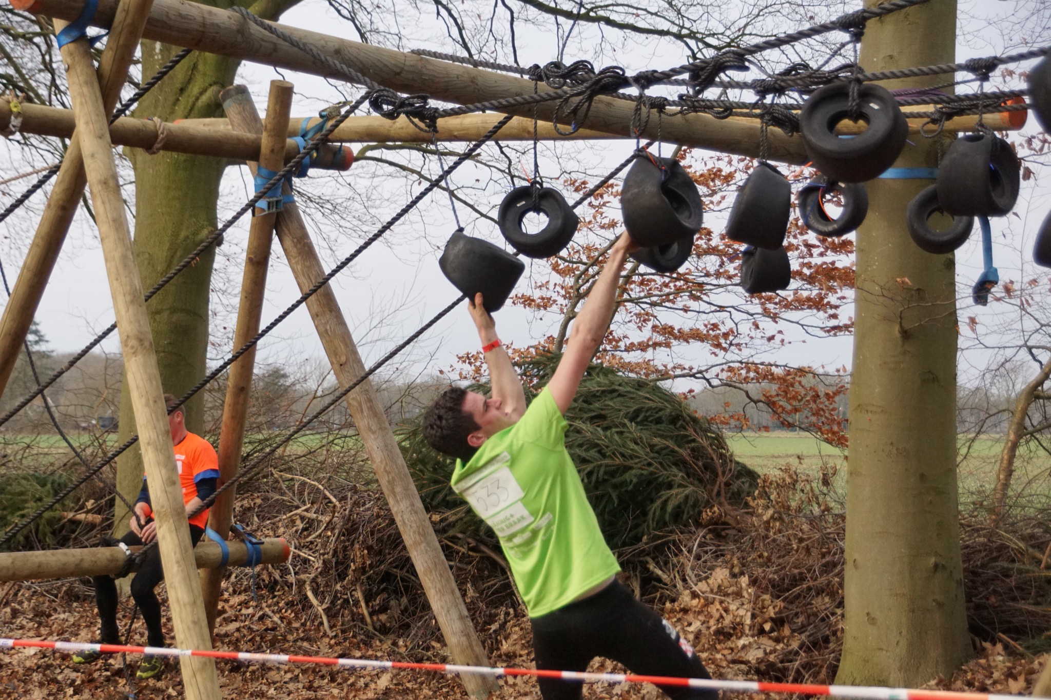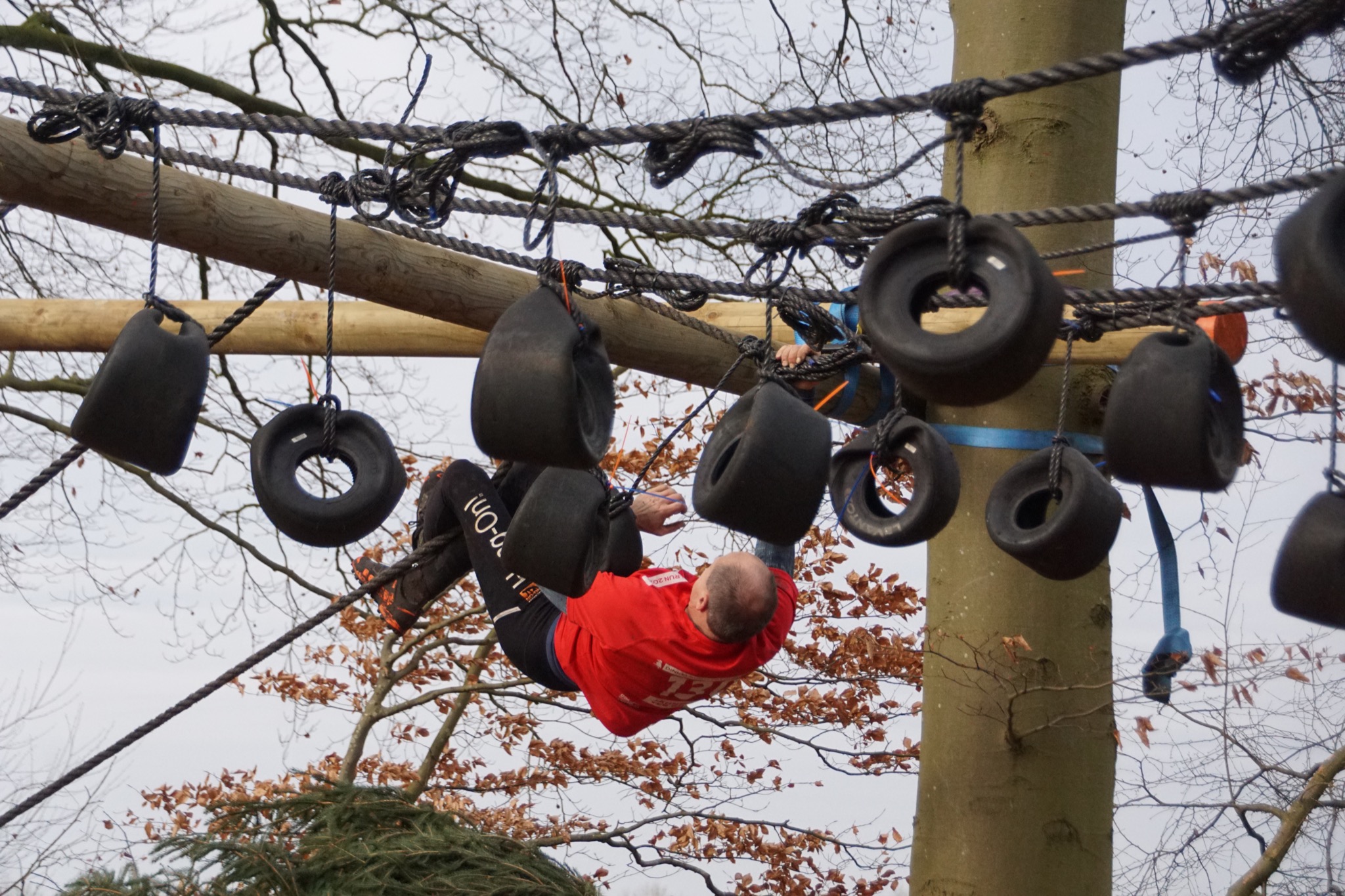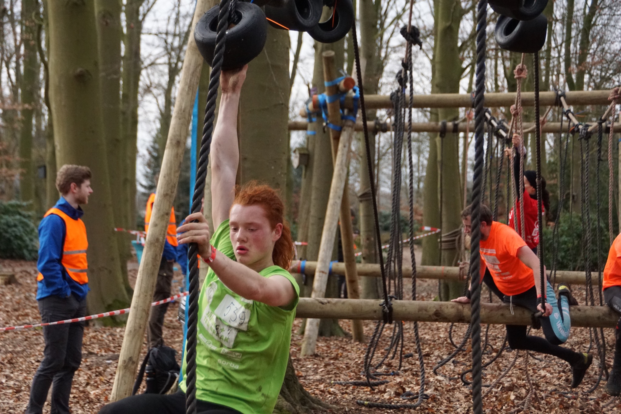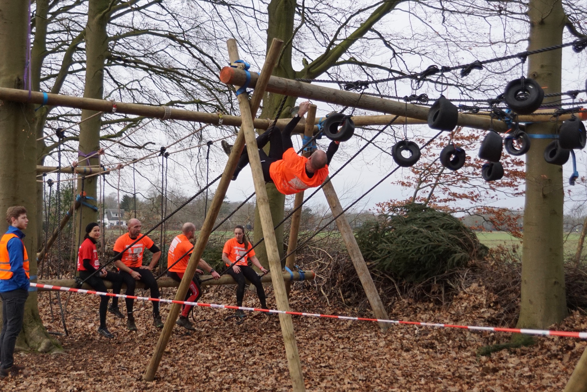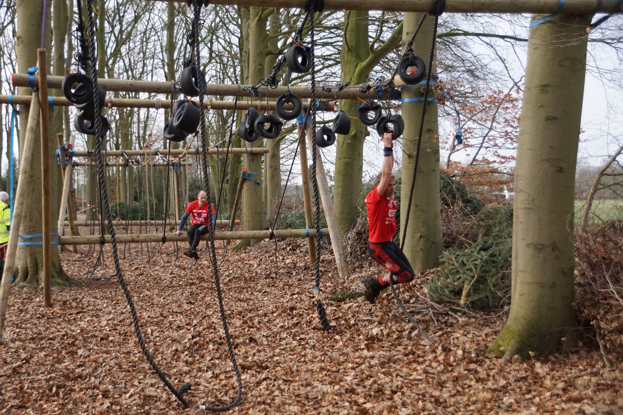 Deelnemers klimmen via het inklimtouw in het strak getrokken touw en klimmen ze door tot het verticale touw en klimmen vervolgens onder balk door weer naar boven in het strakke touw. Vervolgens moeten ze door de lianen klimmen zonder het boventouw te gebruiken.