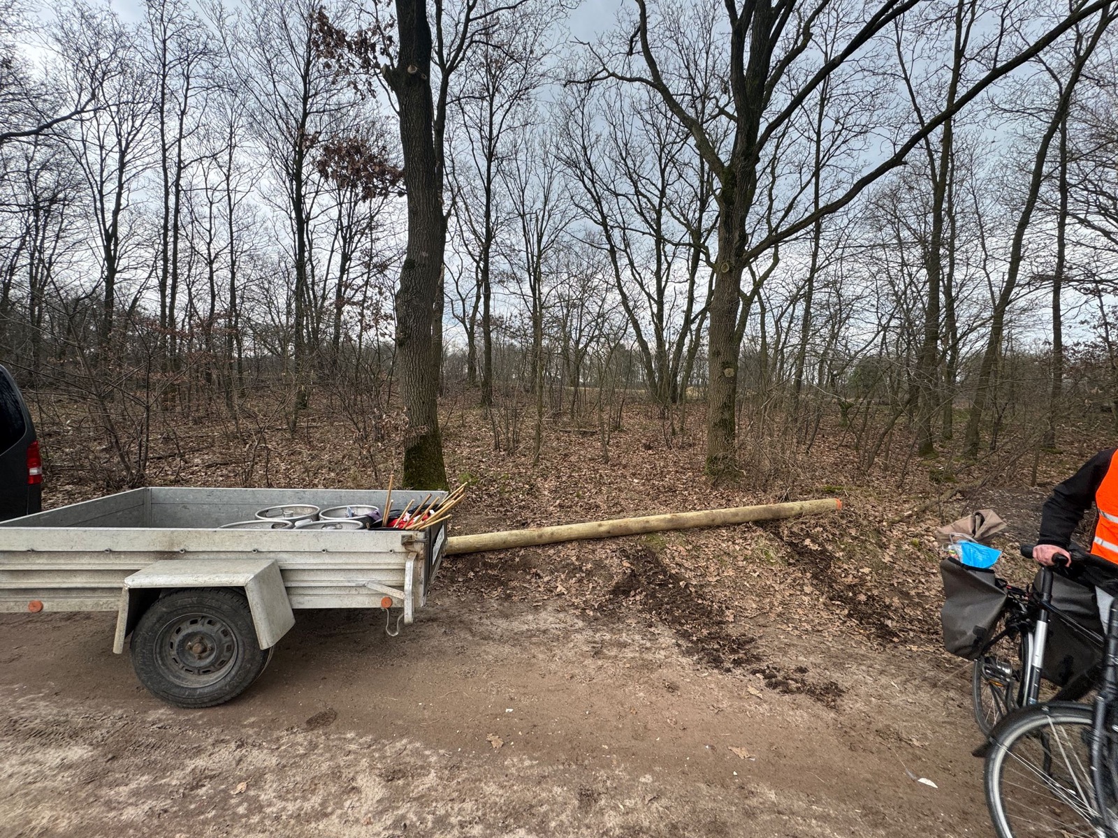 Touwen/balk/biervaatjes losknopen en in de berm leggen zodat het opgehaald kan worden