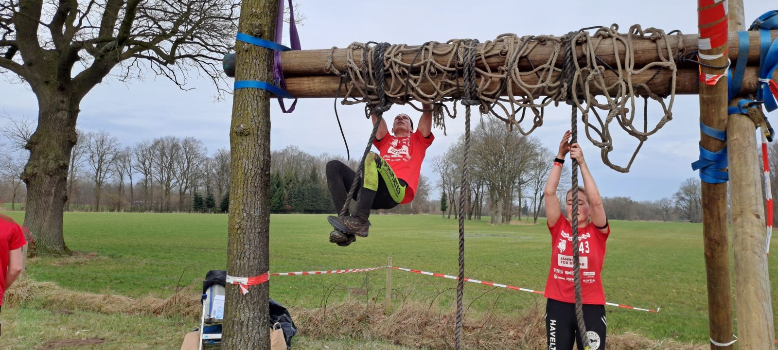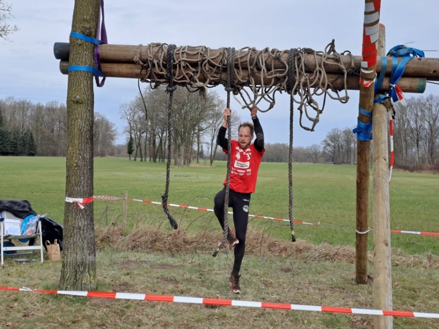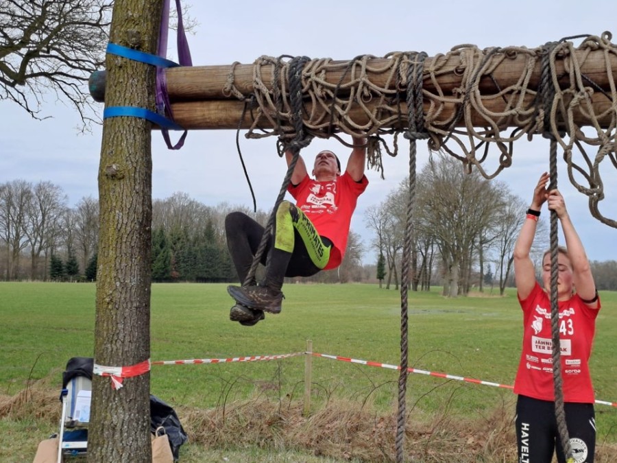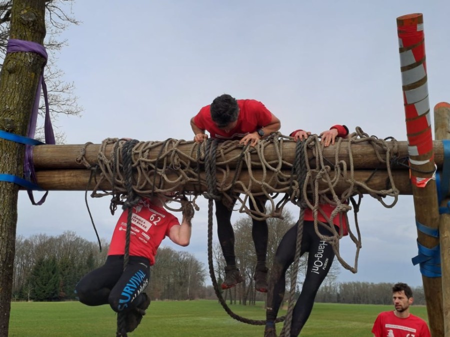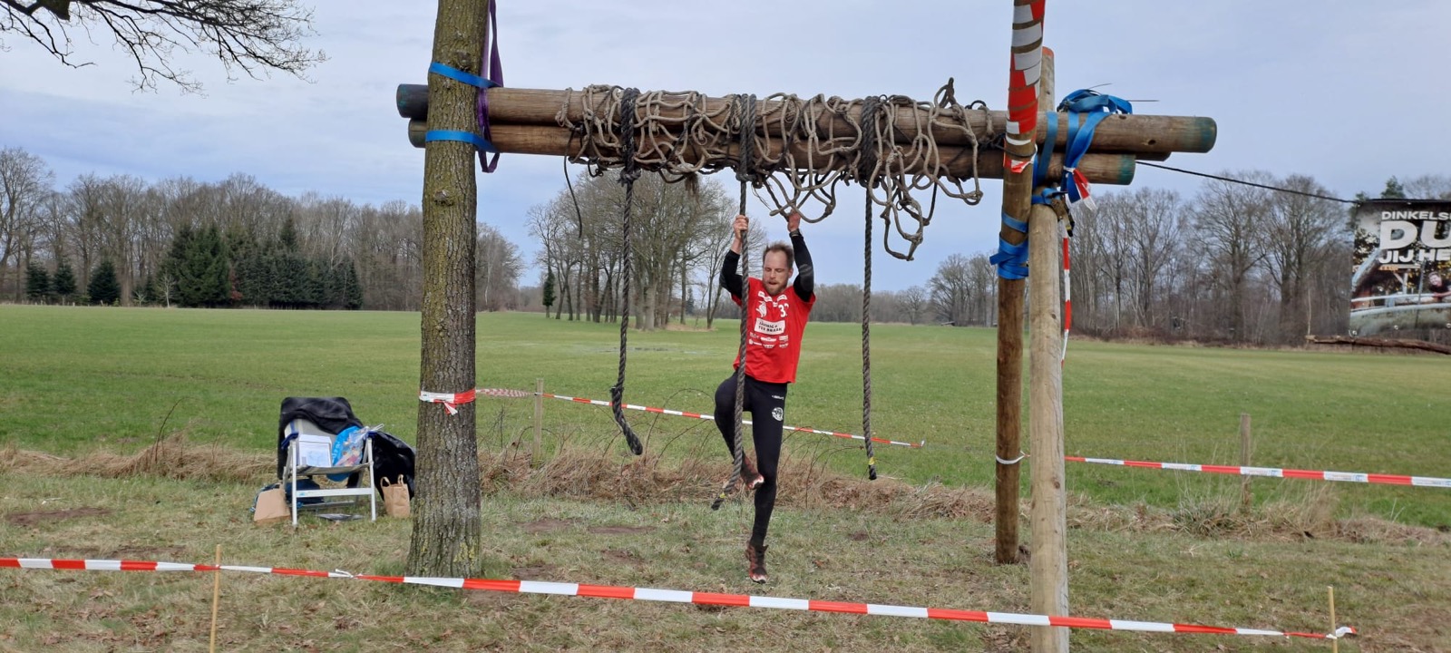 Deelnemers moeten over de balken met net klimmen. Hierbij mogen ze geen gebruik maken van de bomen. Een borstwaartsom is niet toegestaan.