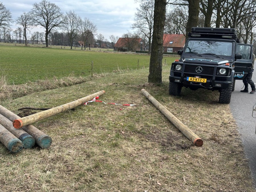 Deze hindernis laten hangen. Wordt afgebroken door de organisatie. De netten mogen al wel losgehaald worden.
