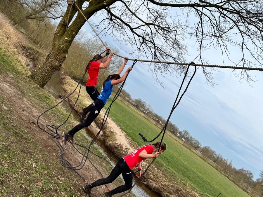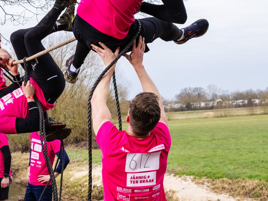 De deelnemers mogen elkaar vanaf de grond helpen.