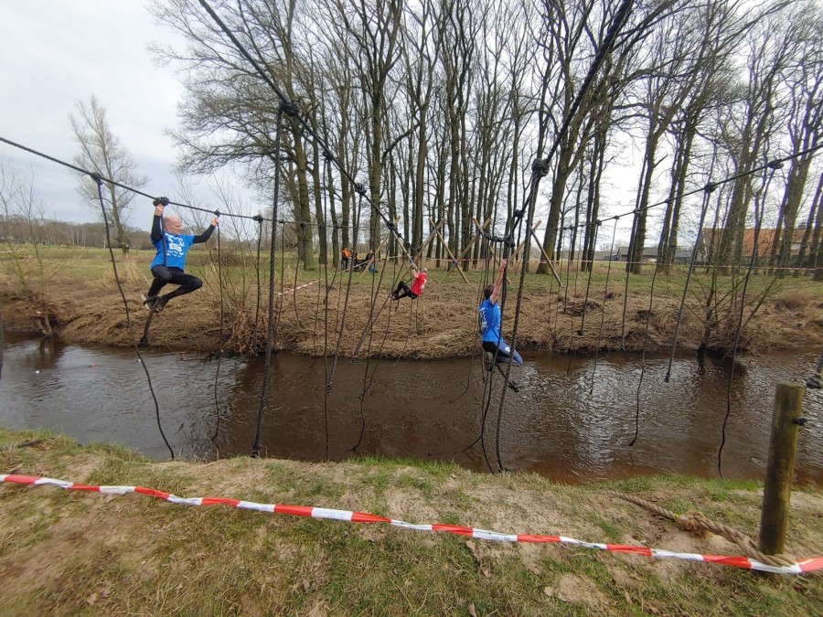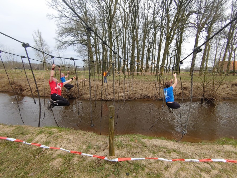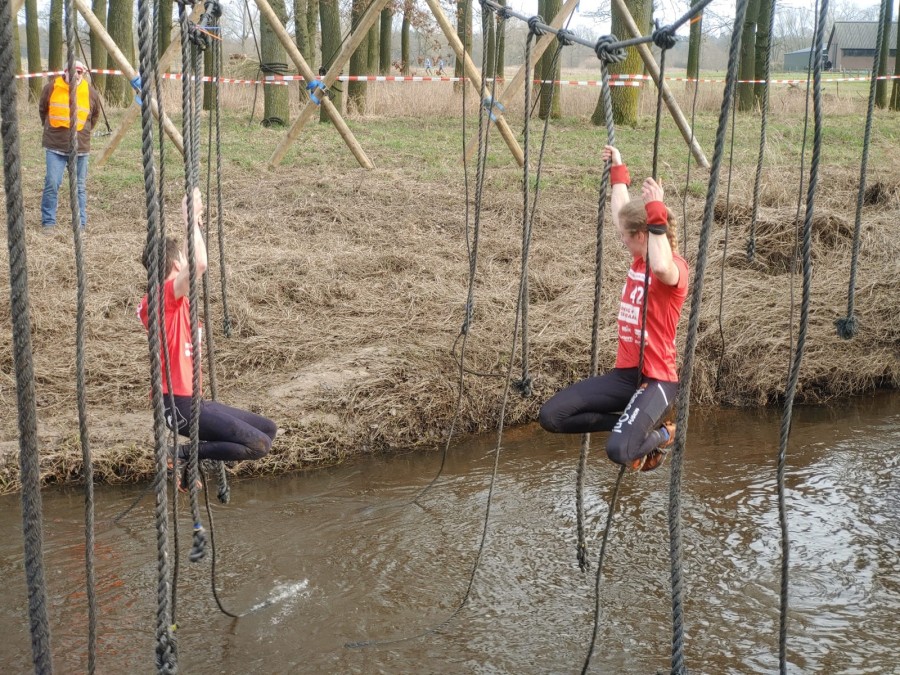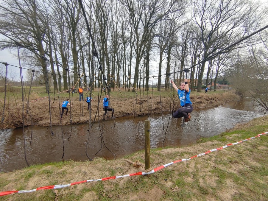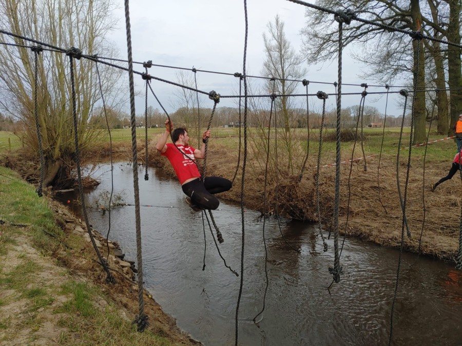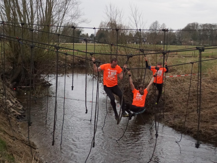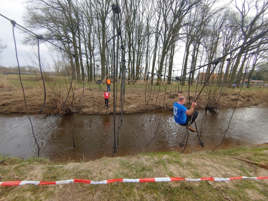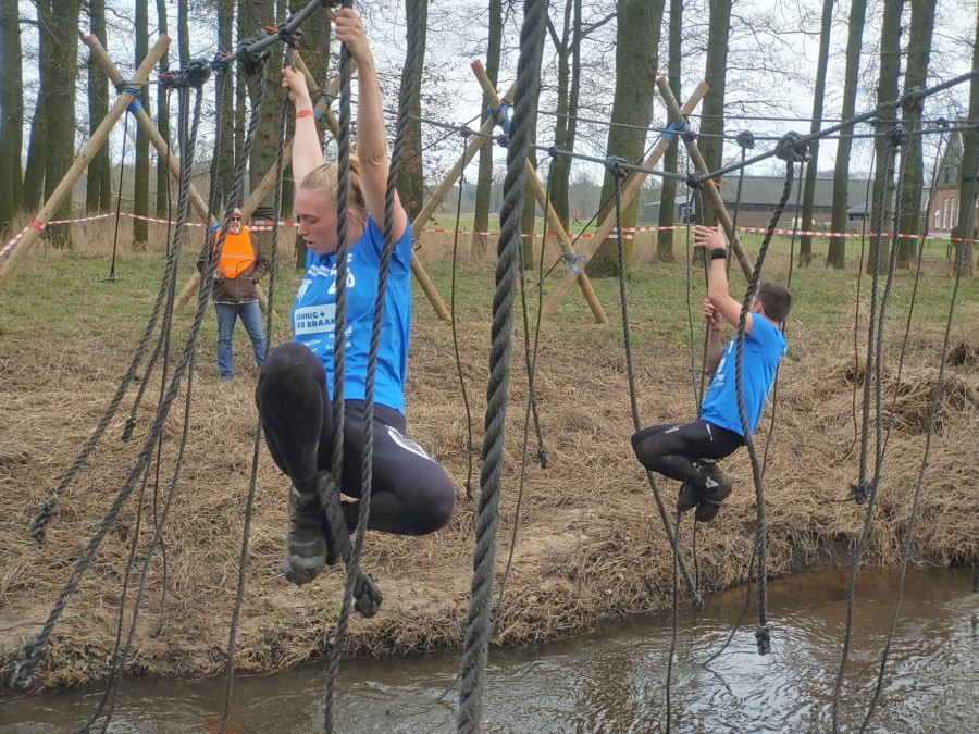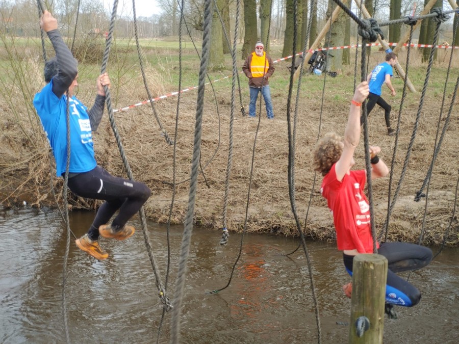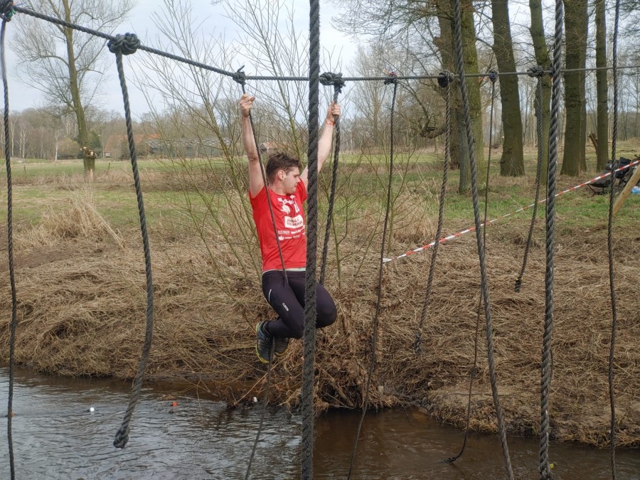 Deelnemers moeten via de lianen naar de overkant van de Dinkel klimmen. Hierbij mogen ze geen gebruik maken van het boventouw.