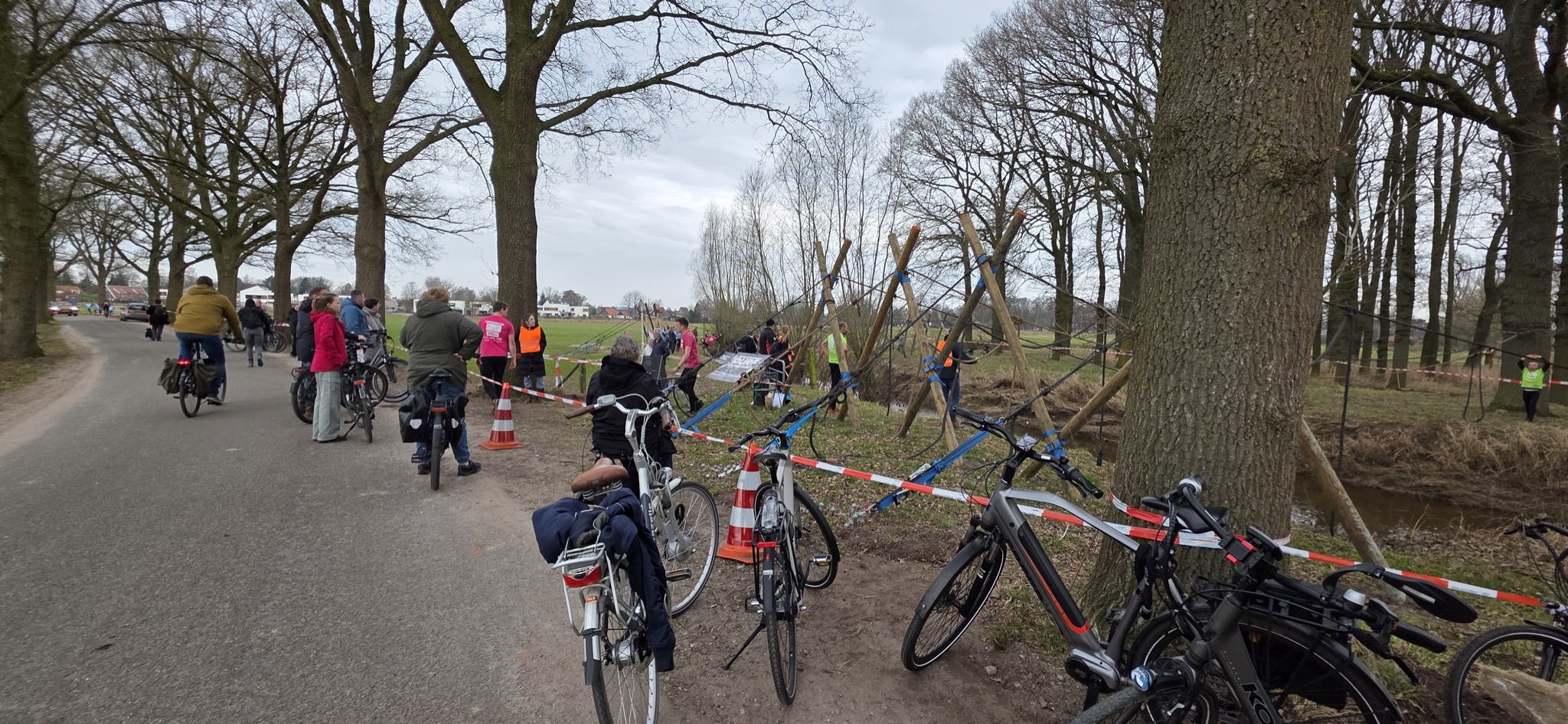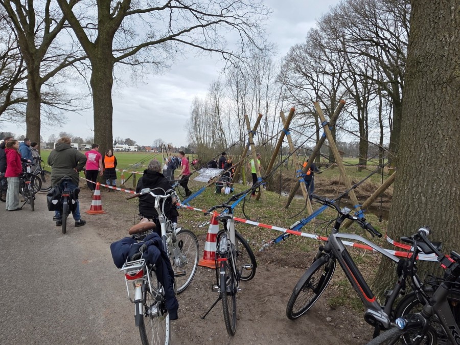 Je mag de constructie gecontroleerd afbreken. Alle balken, touwen en spanbanden mogen na de Ravenhorsterewg gebracht worden zodat deze opgehaald kunnen worden.