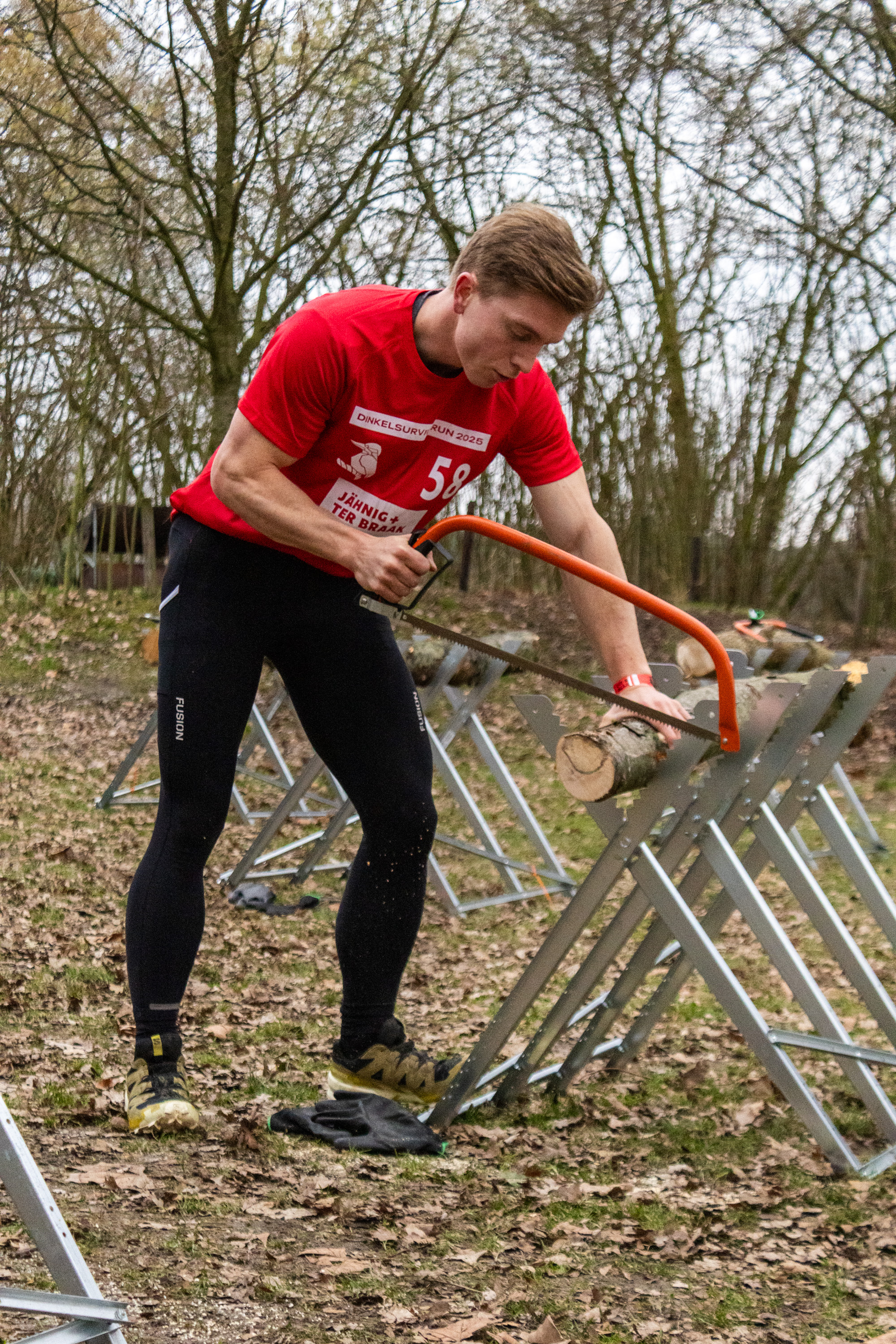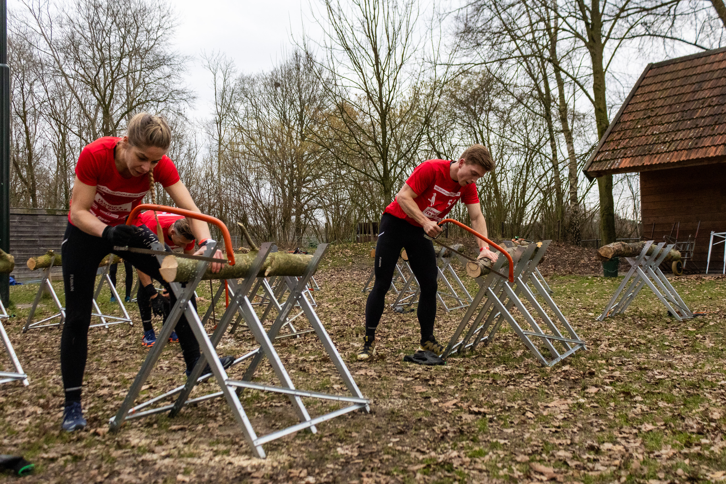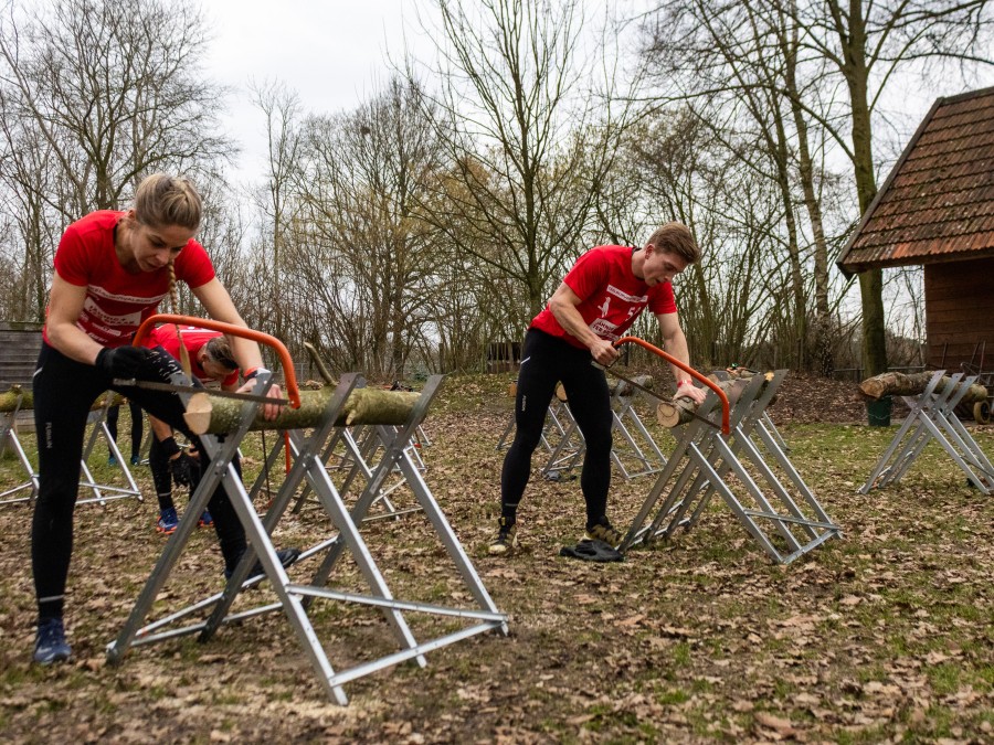 Alle deelnemers zijn verplicht om tijdens het zagen handschoenen aan te trekken
